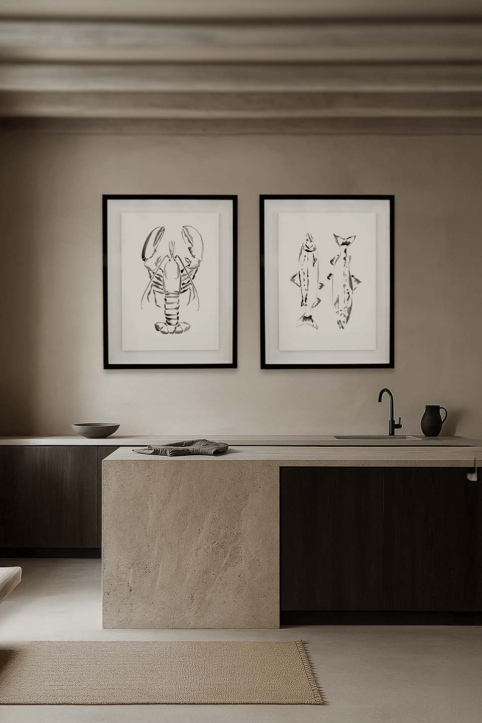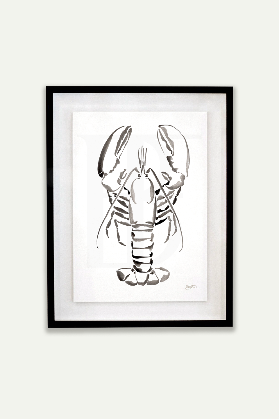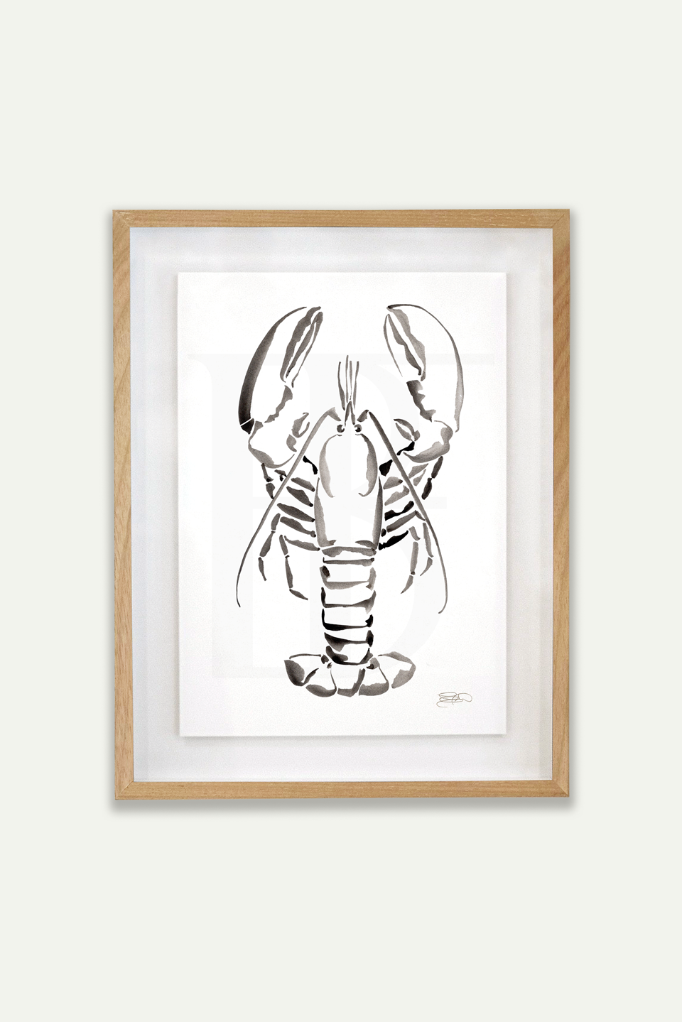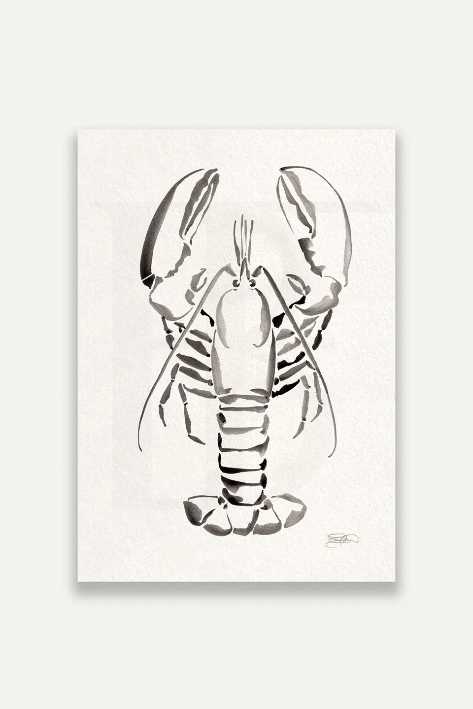 Introduce bold coastal character into your home with this minimalist lobster illustration, painted in Indian ink with a calligraphy brush. Its strong silhouette and delicate detailing create a striking balance between confidence and refinement. Subtle texture gives the piece an organic depth, echoing the sculptural quality of this iconic ocean dweller.