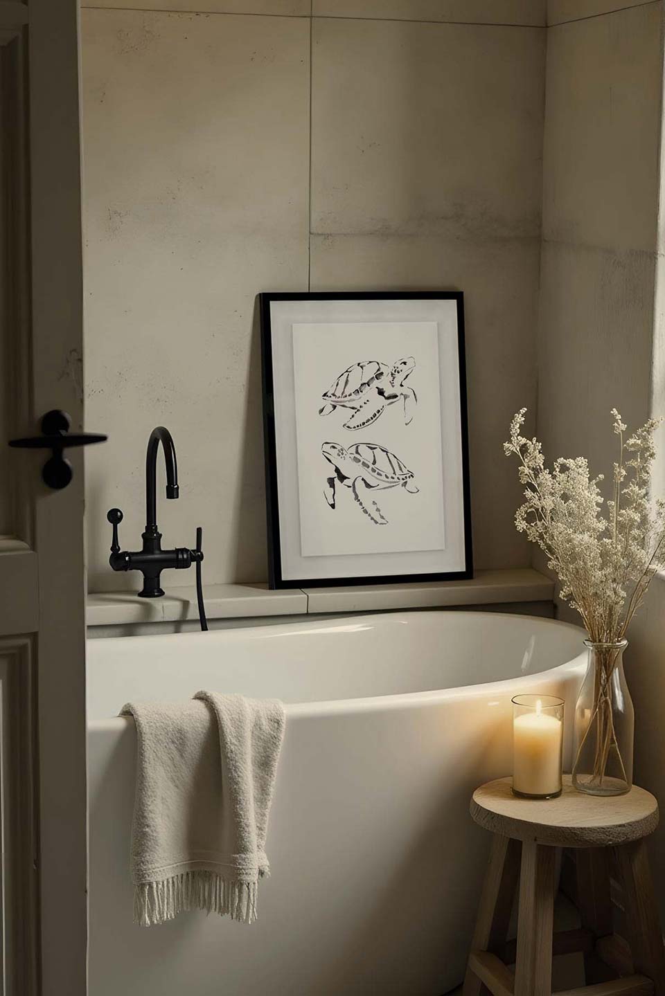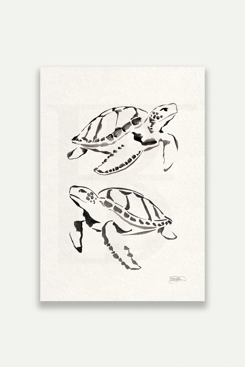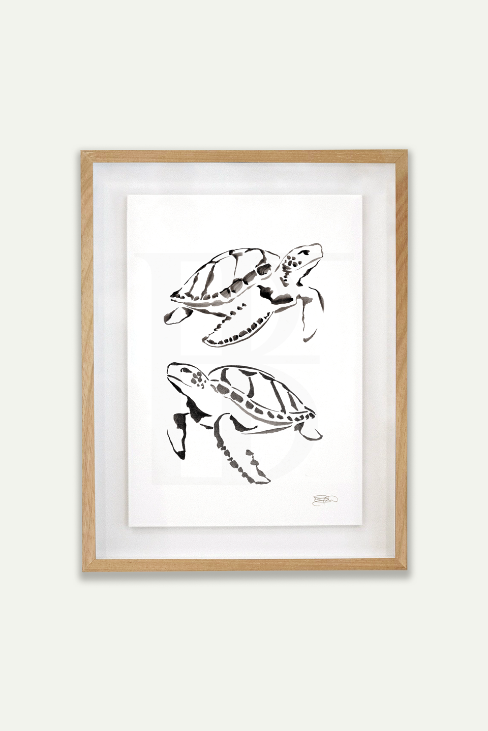 Bring the quiet strength of the ocean into your home with Slow & Steady, a minimalist ink illustration inspired by the gentle movement of sea turtles. Painted with Indian ink and a traditional calligraphy brush, each stroke captures their unhurried grace - a rhythm of calm, intention and quiet resilience. Layered textures give the piece a depth that cannot be replicated digitally, inviting you to feel the steady patience of these beloved creatures.